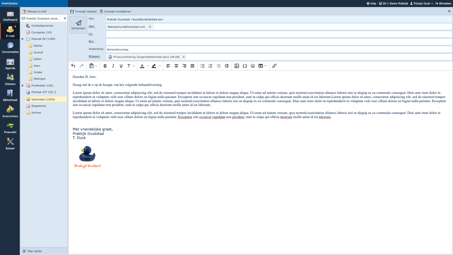 In uw dagelijkse werk is communicatie bijzonder belangrijk, en dus moet het in uw praktijksoftware goed bijgehouden kunnen worden. Met behulp van de communicatiemodule in Praktijkdata zijn brieven, e-mail en andere communicatie direct te koppelen aan het cliëntdossier en daardoor eenvoudig terug te vinden. Daarnaast kunt u met behulp van sjablonen gestandaardiseerde brieven laten aanmaken. Dit met een opmaak in uw eigen huisstijl en lay-out.